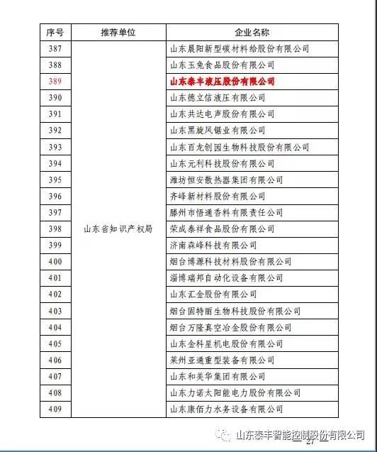 经山东省知识产权局择优推荐,国家知识产权局按照《国家知识产权示范企业培育工作方案》、《国家知识产权优势企业培育工作方案》,对全国各省知识产权局推荐的企业进行考评、审核,12月20日正式发布通知,山东泰丰智能控制股份有限公司荣获“国家级知识产权优势企业”荣誉称号。这是泰丰智能于2016年荣获“山东省知识产权示范企业”荣誉后,在知识产权工作上取得的又一重大突破,泰丰将继续前行,向国家知识产权示范企业迈进。