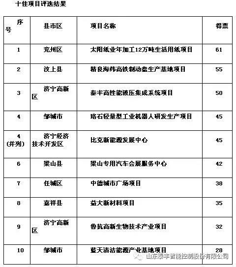 “泰丰高性能液压集成系统项目”以50票位列全市十佳项目第三名