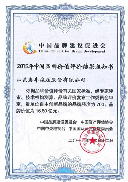 我公司获得中国品牌建设促进会自主创新品牌价值16.8亿的品牌评价