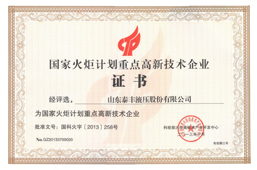 泰丰股份被认定为2013年国家火炬计划重点高新技术企业时间:2013年12月23日